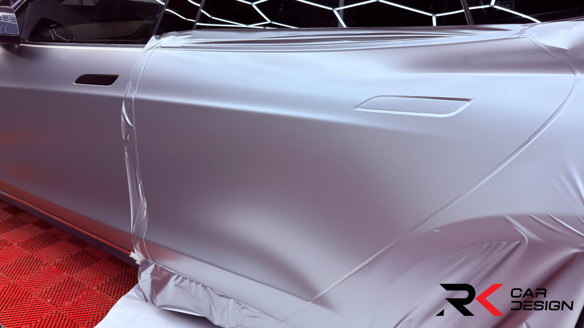 🔹 Next, the car was re-wrapped in a stunning Avery Satin Metallic Light Grey, giving it a sleek, modern look.