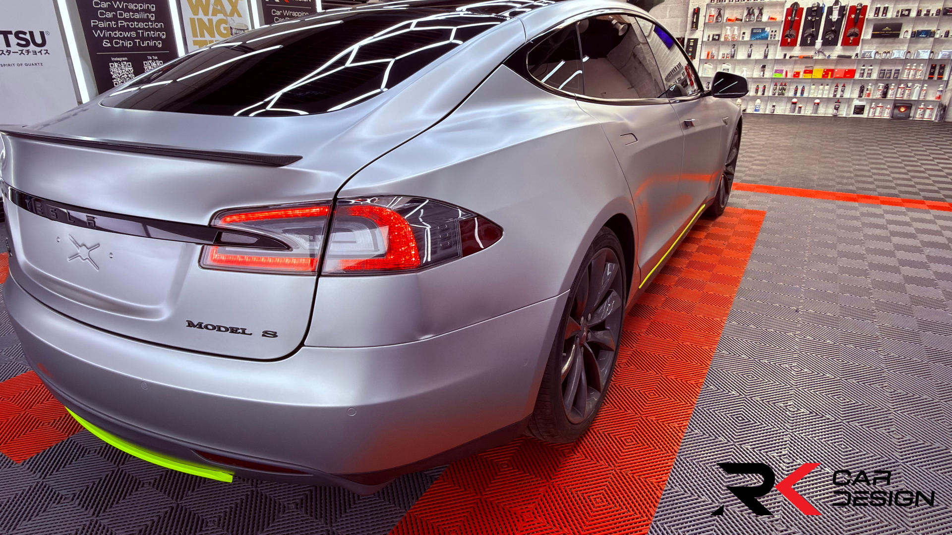 #Tesla #TeslaModelS #AveryDennison #AveryWrap #SatinMetallicLightGrey #CarWrap #CarWrapping #VehicleWraps #WrapLife #TeslaWrap #CustomTesla #BrakeCalipers #FluorescentYellow #GlossFinish #Detailing #CarCulture #WrappedCars
